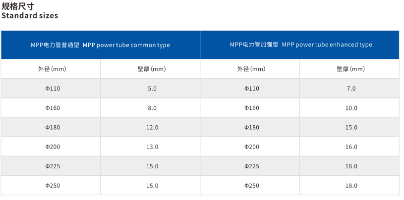 電力電纜用(yòng)非開挖改性聚丙烯(xī)(MPP)保護管是(shì)以改性(xìng)聚丙烯為主要原材料,采用特(tè)殊配方和加工工藝製造的新型塑料管道,具(jù)有強度高、耐溫性能好、穿放電纜容易、施工簡便、節省費用(yòng)等- -係列優點。改性聚(jù)丙烯非開挖管廣泛用作電(diàn)力電纜和通信電纜的保護管(guǎn),作為拖管施工更顯產品特性,它符合現代城市的發展要求,適合埋深在2-18m範圍。應用非開挖鋪管技術具有不汙(wū)染環境、不影響交通(tōng)、對(duì)地層結構破壞小、施工安全可(kě)靠、周期短、無需運輸和堆放雜土、成本低、社(shè)會效益與經濟效益顯(xiǎn)著等特點,應用領域很(hěn)寬,改性MPP電力電纜護套管(guǎn)采(cǎi)用非(fēi)開挖技術進行施工,既保證了管網的可靠性,降低了管網的故障率,同時(shí)也使(shǐ)市容環境得到大(dà)大的改(gǎi)善。